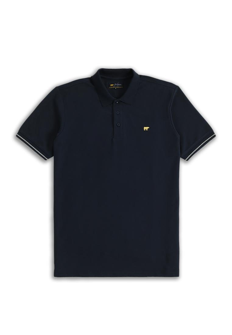 Double faced Flat knit (rib) (dua warna berbeda) di kerah dengan outline Golden Bear logo di kerah bagian tengah belakang