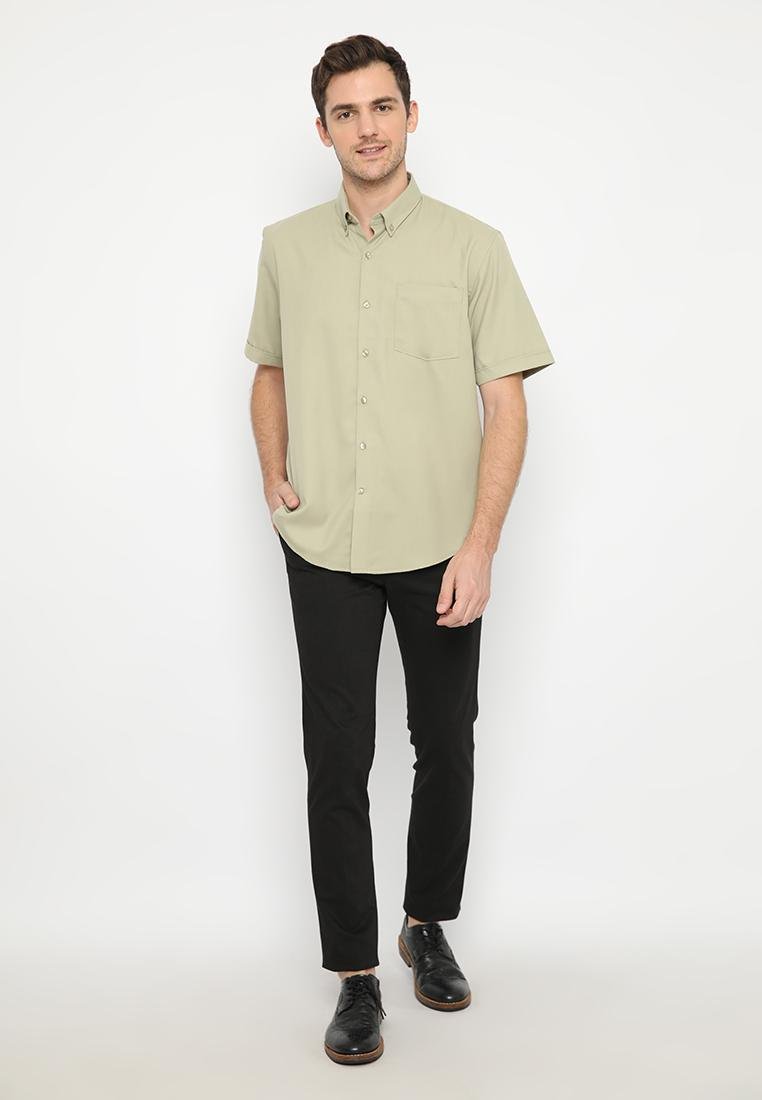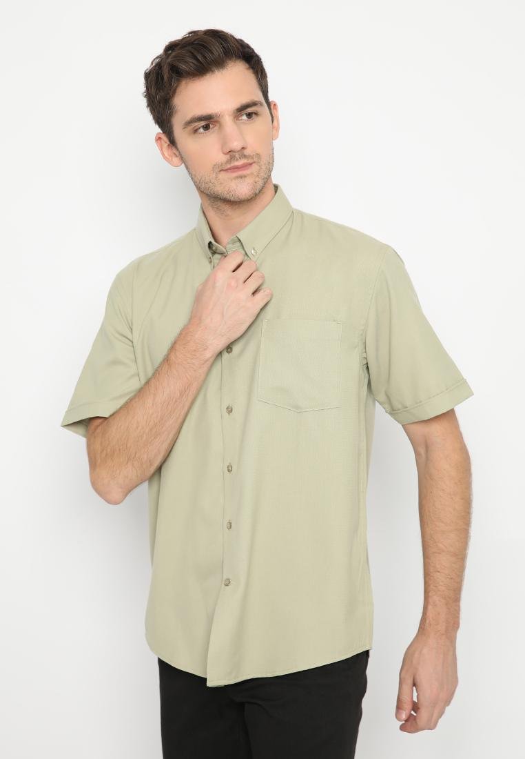 JOBB Truro Kemeja Pria Lengan Pendek Slim Fit Medium Green